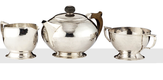 TEA SERVICE comprising three pieces, the teapot of bulbous