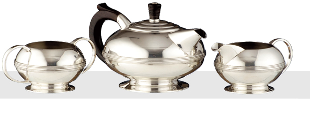 TEA SERVICE comprising three pieces, the teapot of bulbous