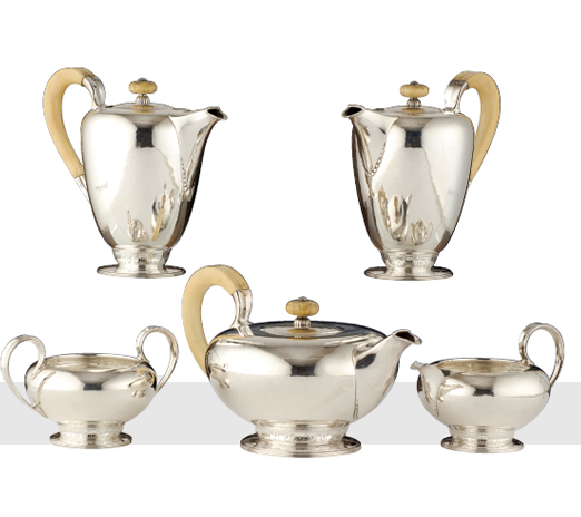 TEA and COFFEE SERVICE with martelé surface, the covers