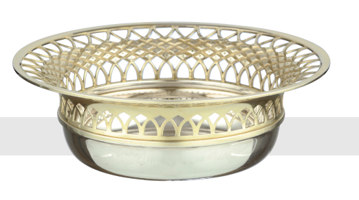 BON BON with openwork gilt sides featuring a three-tier lozenge band with inverted 'Vs' above and below. Designed by Elson for Asprey's whose maker's mark it bears. London 1976.
