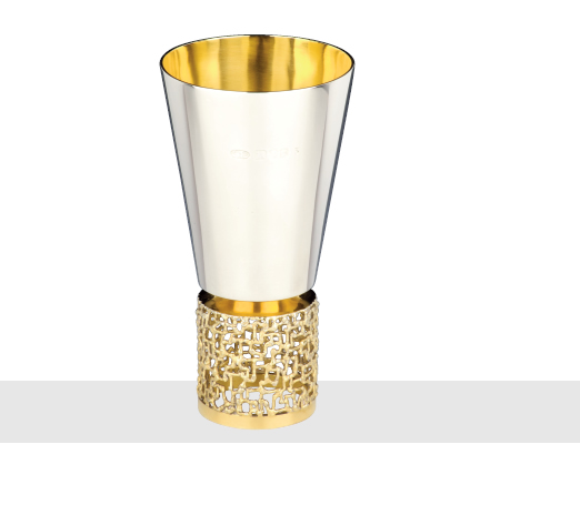 TUMBLER that is one of a set of six. The gently tapering body set on a gilt filigree base. London 1967.