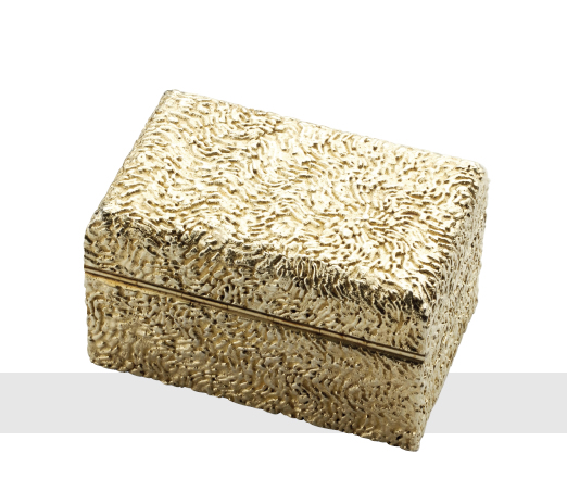 BOX in silver gilt with textured surface. The interior is lined with wood. London 1969.