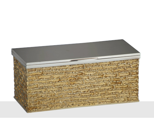 BOX of rectangular form with 'brick' gilt textured sides and plain silver top. London 1970.