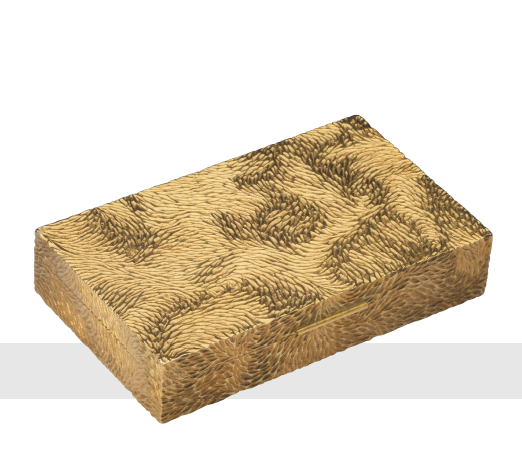 BOX of rectangular form in 18 carat gold, the surface textured to be reflective in patches, therefore forming a pattern. London 1975.