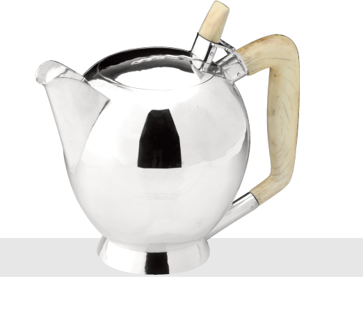 HOT WATER JUG in the Post War modernism style was made by Gerald Benney in circa 1947 for the wife of the brother of the bandleader Henry Hall. Hallmarked Brighton College of Art, London 1949 but made in circa 1947.