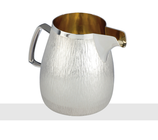 CREAM JUG A typical Benney hand-raised pouring vessel textured and polished exterior surfaces with a gilt interior. The base of this is engraved Michael Behrens. Ralph Metcalfe 20 May 1896. London 1965.