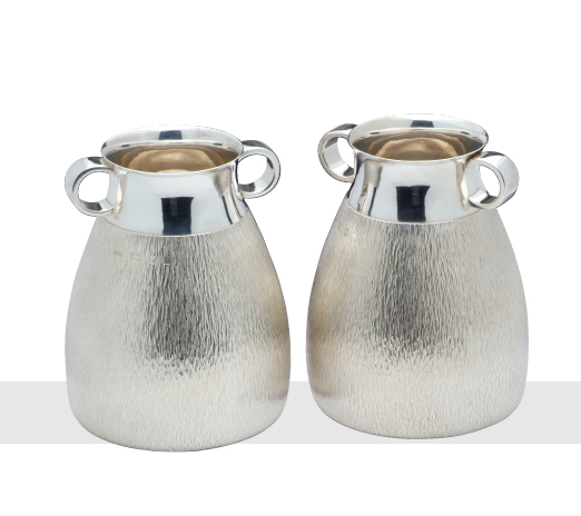 VASES made as part of the service for ICI's directors' dining room. Hand-raised and of classical form, they are a particularly good example of 'Benney's Bark Finnish'. London 1969.