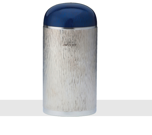 BOX of canister form for cigars. the pull-off cover enameled in translucent dark blue over a finely textured surface. The enameller is Robert Winter. London 1972.