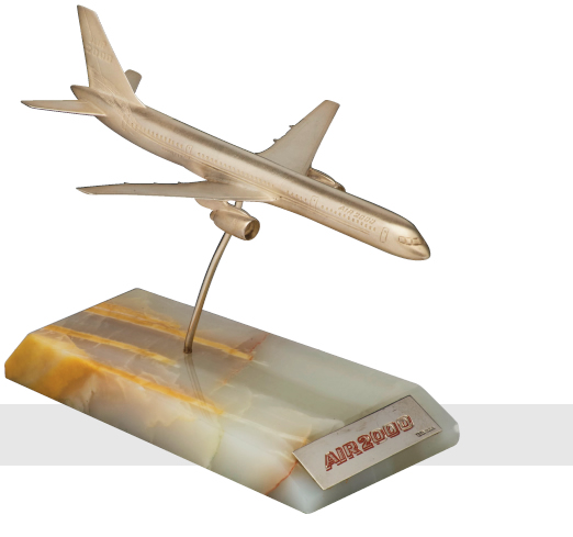 MODEL of a Boeing 757 with the Air 2000 livery which had its first flight on 11 April 1987. Now part of Thomson Airways. London 1987.