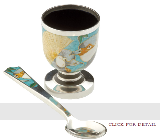 EGG CUP and spoon. The bowl of the cup enamelled with