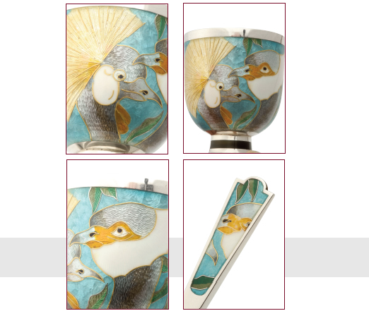 shades and cloisons of gold foil and silver wire on a