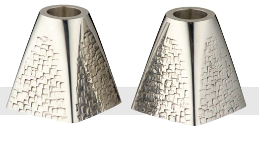 CANDLESTICKS of a square tapering form with partial 'brick' engraving. London 1976.