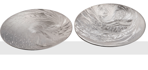 DISHES of circular form in sterling silver engraved with organic patterns. London 2008.