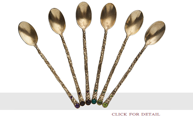 COFFEE SPOONS in silver gilt with cast handles decorated