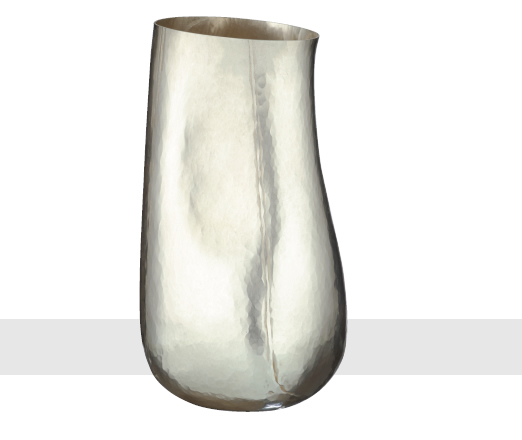 POURING VESSEL in satin Britannia standard silver. Handraised, then split and soldered with the seams resembling those of a leather bag that has been filled with water - ie 'pregnant'. London 2007.