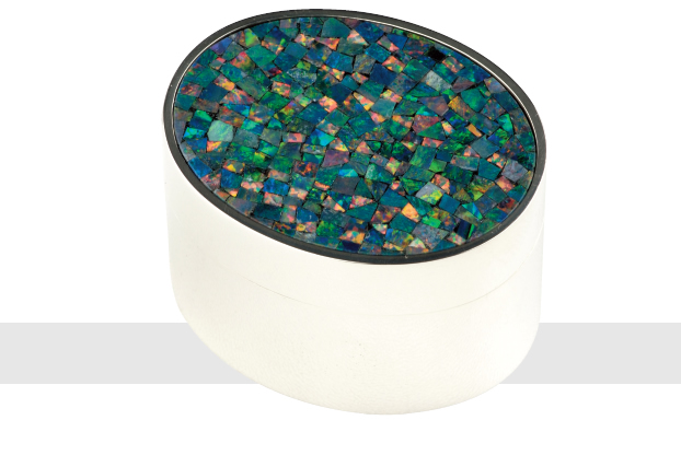 BOX of oval form the pull-off cover set with an opal mosaic. Birmingham 2004.