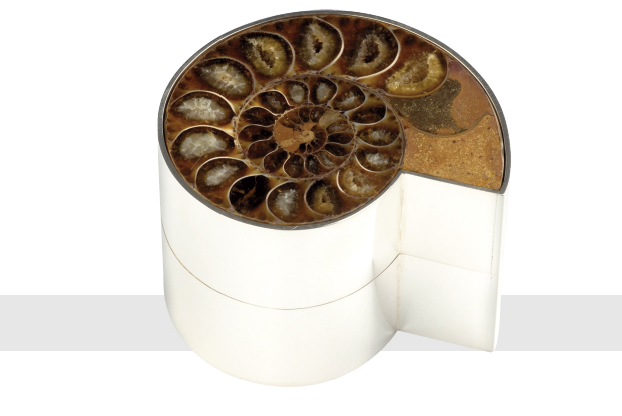 BOX with the pull-off cover set with an ammonite. Birmingham 2005.