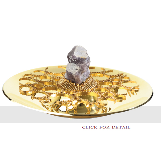 The amethyst finial is unmarked, but is likely to have been made in the year of the bowl which bears the hallmark for 1968. The candleholder finial bears the hallmark for 1969.