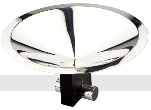 DISH of circular form mounted on a rectangular slate plinth with a silver stabilising 'bolt' inserted through the slate. London 1970.