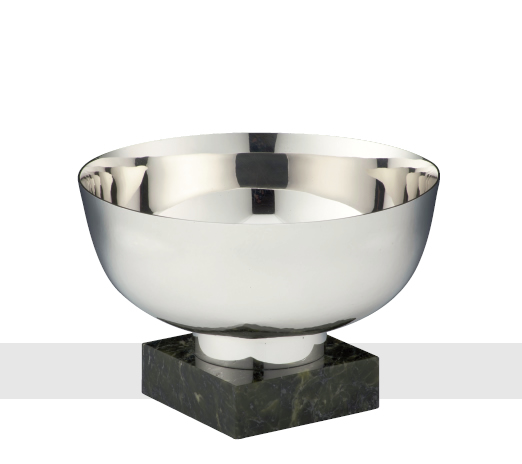 BOWL on green marble plinth. Presented to the Right Hon