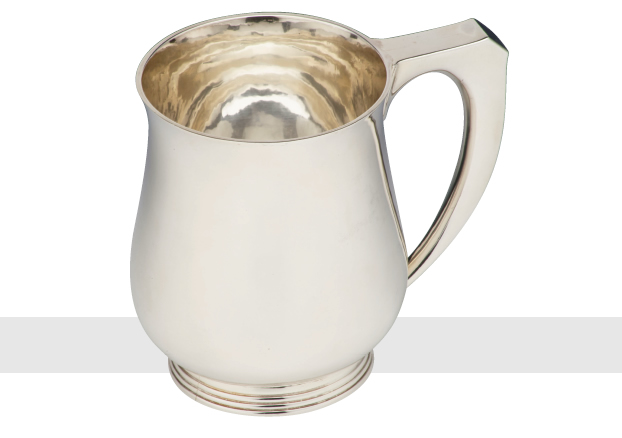 TANKARD while initially appearing to be of traditional form, it does have a modern line. The piece is superbly handraised. London 1953.
